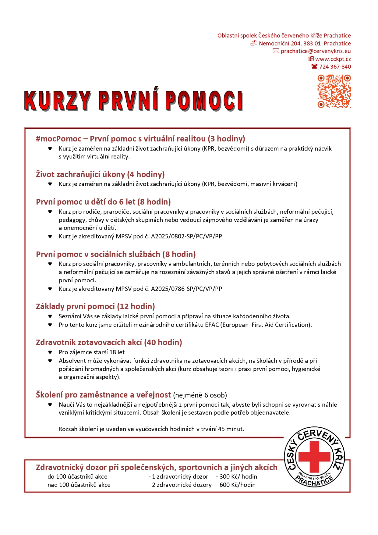 Kurzy první pomoci pro veřejnost, sociální nebo pedagogické pracovníky, chůvy, rodiče, zaměstnance.....
